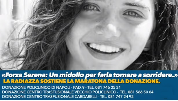 Diciassette anni appena, Serena ha scoperto dopo accertamenti dovuti ad un malore, di essere affetta da aplasia midollare, una rara malattia che colpisce in media due persone su un milione. La diagnosi, fatta all’ospedale Cardarelli è di quelle che prevedono un’unica speranza di vita normale: un trapianto di midollo. I prelievi effettuati per verificare la compatibilità dei familiari hanno dato esito negativo, ecco perché ora Serena ha bisogno di un donatore esterno. I genitori, Carmine e Carmela, chiedono un gesto d’amore per salvare Serena, ma anche tanti altri che ne hanno bisogno, iscrivendosi al registro europeo dei donatori di midollo. Possono farlo tutti i giovani dai 18 ai 35 anni e la tipizzazione midollare – che avviene con un prelievo di sangue o con tampone salivare – è davvero semplice e veloce. Basta rivolgersi ai vari ospedali di Napoli, dal Policlinico (padiglione 9 – telefono 0817462531), al centro trasfusionale del Policlinico vecchio (0815665064/78), fino al Cardarelli (0817472492). Al momento Serena è in cura all’ospedale pediatrico Bambino Gesù di Roma, assistita dal professore Franco Locatelli. Il papà, Carmine, ha lanciato un ulteriore appello, chiedendo aiuto per organizzare iniziative di sensibilizzazione con l’Admo, l’associazione donatori. Ebbene, l’appello è stato raccolto da volontari sia a Pomigliano d’Arco, sia a Sant’Anastasia. Domani, dalle 9 alle 18, la prima iniziativa – dalle 9 alle 18 – alla sede Avis di Sant’Anastasia, in via Pomigliano 38 che si ripeterà domenica dalle 9 alle 12. Pomigliano d’Arco ha risposto con un gazebo in piazza Giovanni Leone, con orari ancora da definire ma date già fissate: venerdì 14 e sabato 15 febbraio. I volontari saranno attrezzati per effettuare tamponi salivari e, chi vorrà, potrà donare il sangue.
