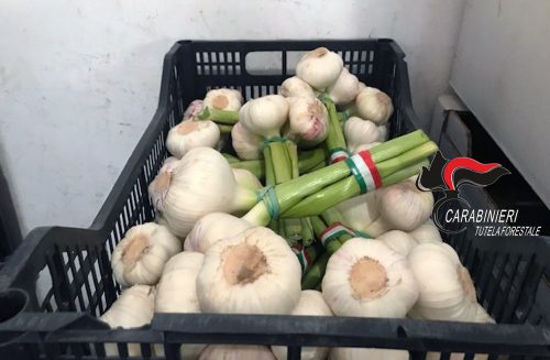Nel capannone in cui è stato effettuato il controllo, erano presenti 700 chili di patate, 200 di cipolle e 50 di aglio senza alcuna indicazione sulla provenienza.