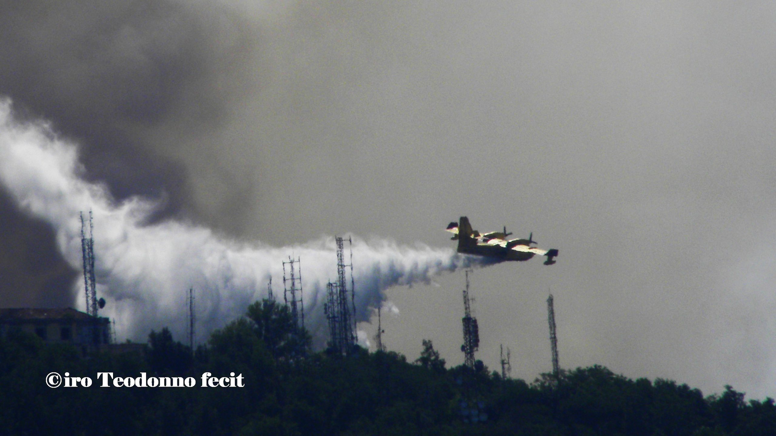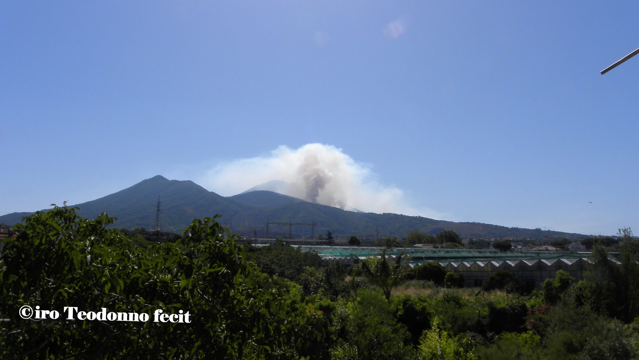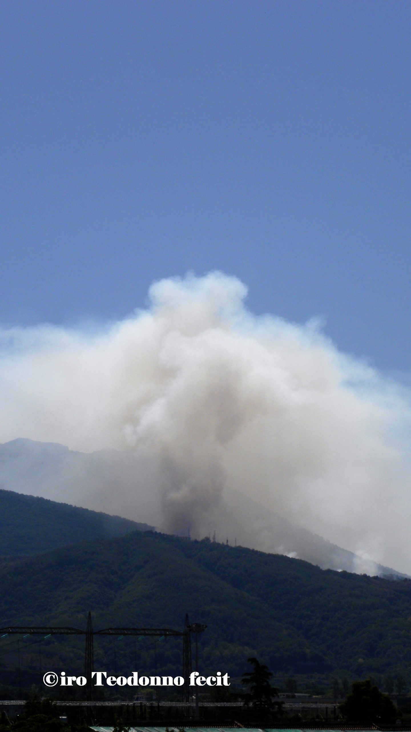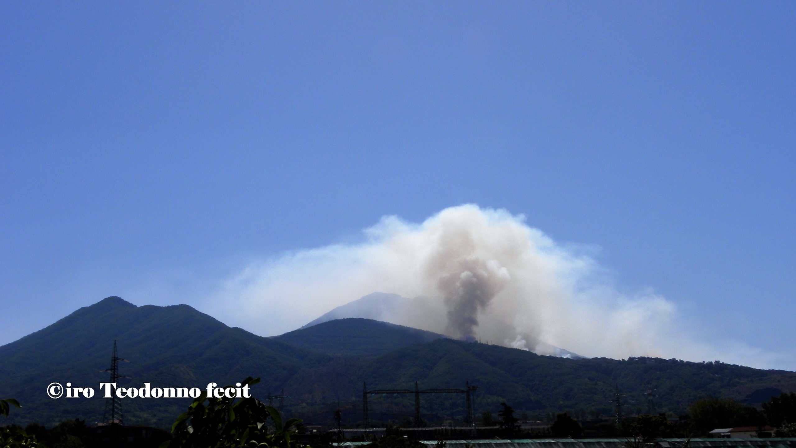 Oggi vola sulle nostre teste un solo Canadair che fa la spola tra il Golfo e il Vesuvio, la SMA ha due moduli in avaria, la PC ha bisogno di altre squadre e una nuvola scura e minacciosa si eleva tra il Colle del Salvatore e Colle Umberto, è la riserva integrale del Tirone Alto Vesuvio che brucia.