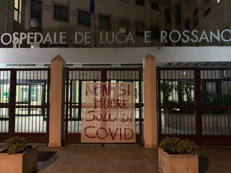 La scritta su un lenzuolo campeggia all’entrata dell’ospedale De Luca e Rossano di Vico Equense (Napoli) ‘Non si muore solo Covid’ e sintetizza quanto potrebbe accadere con la soppressione del pronto soccorso nel nosocomio della costiera sorrentina.