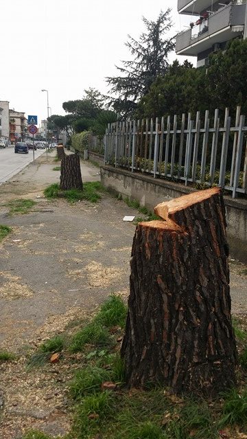 Il responsabile del Verde Pubblico del Comune di Volla, l’ingegnere Oscar Gatta, ci ha confermato che l’intervento di rifacimento dei marciapiedi è un’eredità della vecchia amministrazione. I Pini sono stati tagliati per prevenire il pericolo di cadute per i passanti, e di cadute degli alberi dovute alla crescita superficiale delle radici e ai vari interventi di potatura delle stesse che ne hanno indebolito la stabilità.