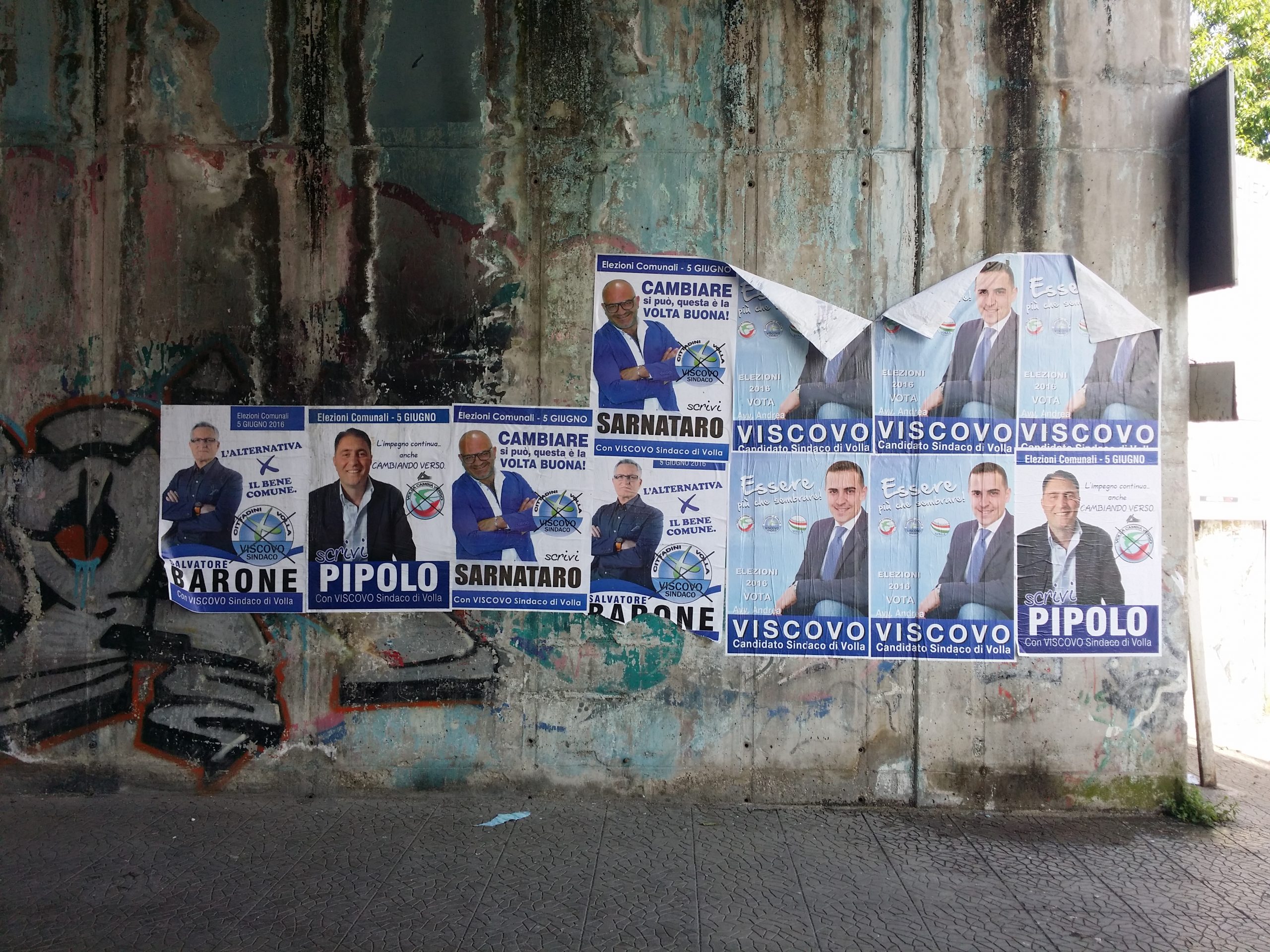 A pochi giorni dalla conclusione della campagna elettorale, il comune di Volla è invaso da manifesti elettorali abusivi.