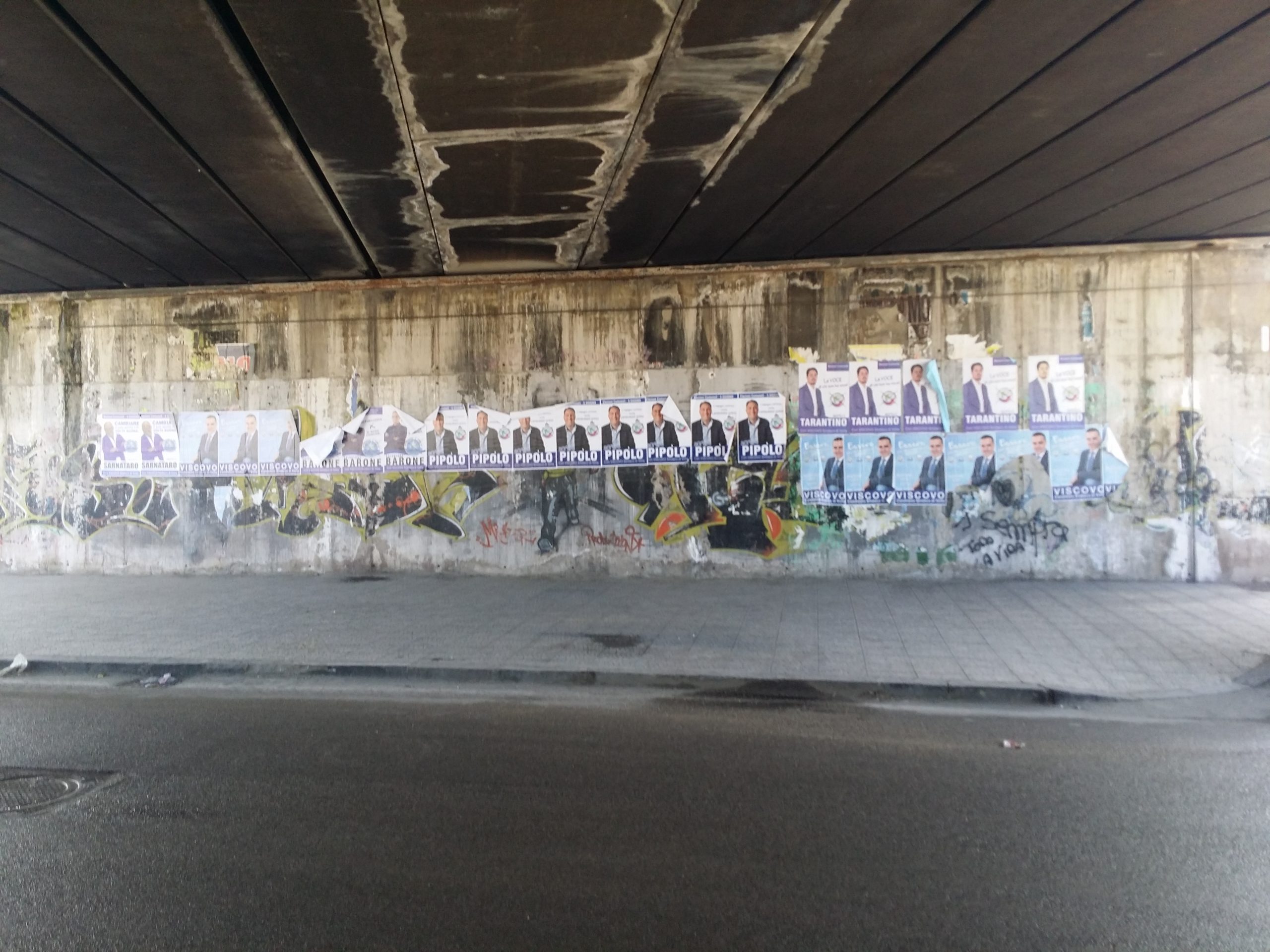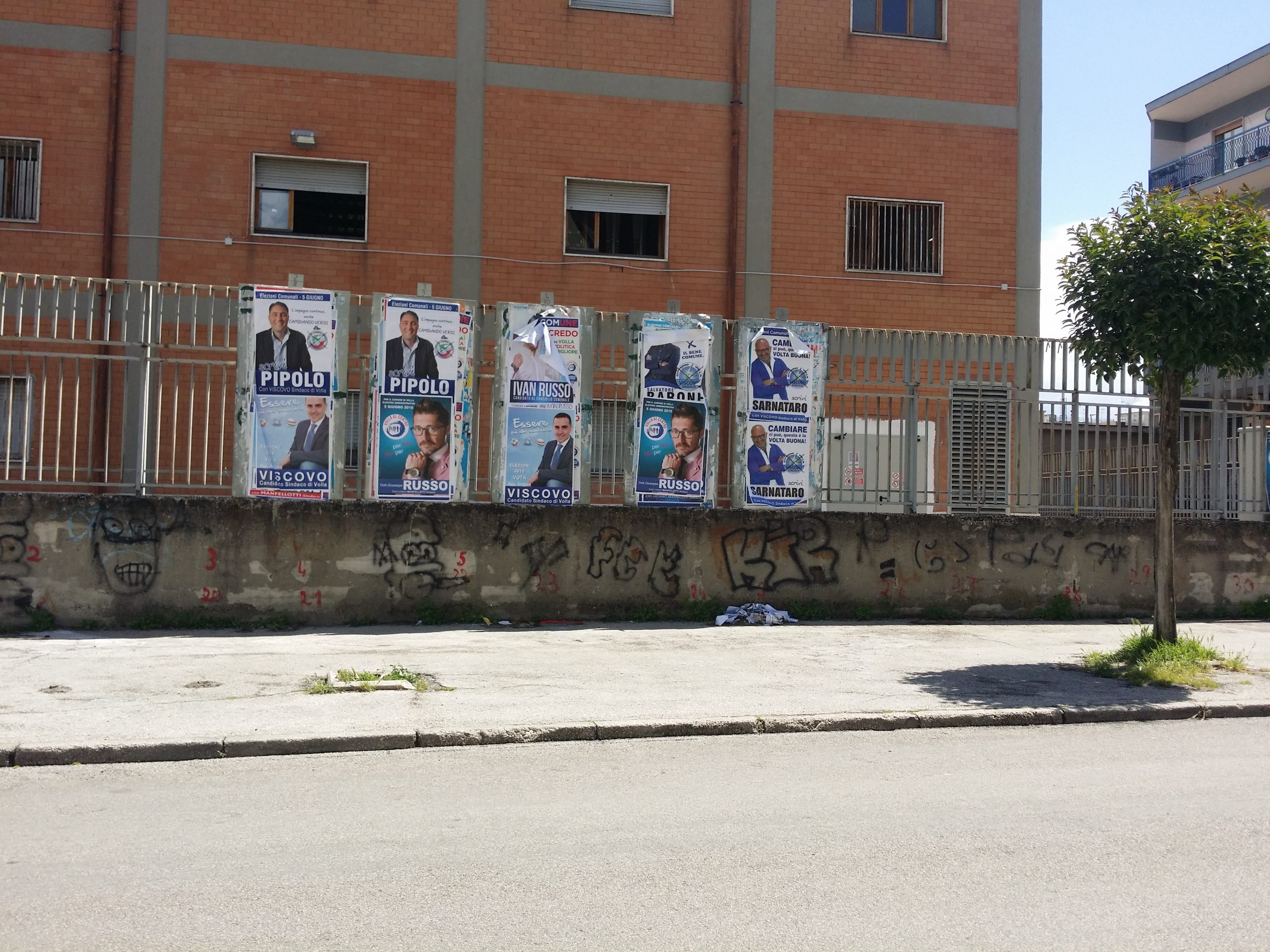 Quello che più colpisce l’osservatore attento è l’enorme “stesa” di manifesti elettorali. Li vedi dappertutto. Hanno imbrattato qualsiasi cosa possibile e immaginabile, fissa e, da qualche anno a questa parte, anche mobile. I candidati non hanno avuto il minimo pudore di attaccarsi e farsi attaccare ovunque.