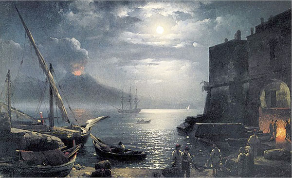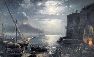 Il primo ragù, con la sola polpa di manzo, il vino bianco e il sedano e lo scalogno – il ragù breve e veloce – è il piatto dell’” abbiento”, della calma, del distacco, della “noluntas”: non voglio chiudere gli occhi sul caos che sconvolge le cose intorno a me, sugli scrosci del ridicolo che scendono giù dal cielo delle macchiette: ma faccio in modo che le onde della confusione si fermino ai confini del mio spazio vitale. Non ci sono cipolle nel ragù dell’”abbiento”, le micidiali cipolle, che anche quando sono “consumate”, possono ancora sprigionare la nota urtante, e far da cavallo di Troia, nello spazio della mia distaccata serenità, alla “quequera ammuina” che si “arravoglia” fuori dalle mura. La gratinatura finale è come la velatura di azzurro scuro che Silvestro Scedrin passava sui “notturni” del golfo di Napoli (v. foto in appendice), sulla serenità di una tenebra che vela ogni cosa senza nasconderla del tutto. La musica di questo piatto è placida come quella di “Fenesta vascia”, la melodiosa “barcarola” in cui il cuore dell’innamorato “arde”, ma è pur sempre una candela che alla fine spegnerà fiamma e dolore, e l’indifferenza della donna è “neve”, che alla fine si scioglierà in un modo o nell’altro, toglierà alle “lacreme d’ammore” ogni nota di passione e di sofferenza, e ricorderà all’innamorato che il suo pianto è, infine, solo “acqua”, e che anche la passione più fiammeggiante è, a ben vedere, solo la febbre di un momento.